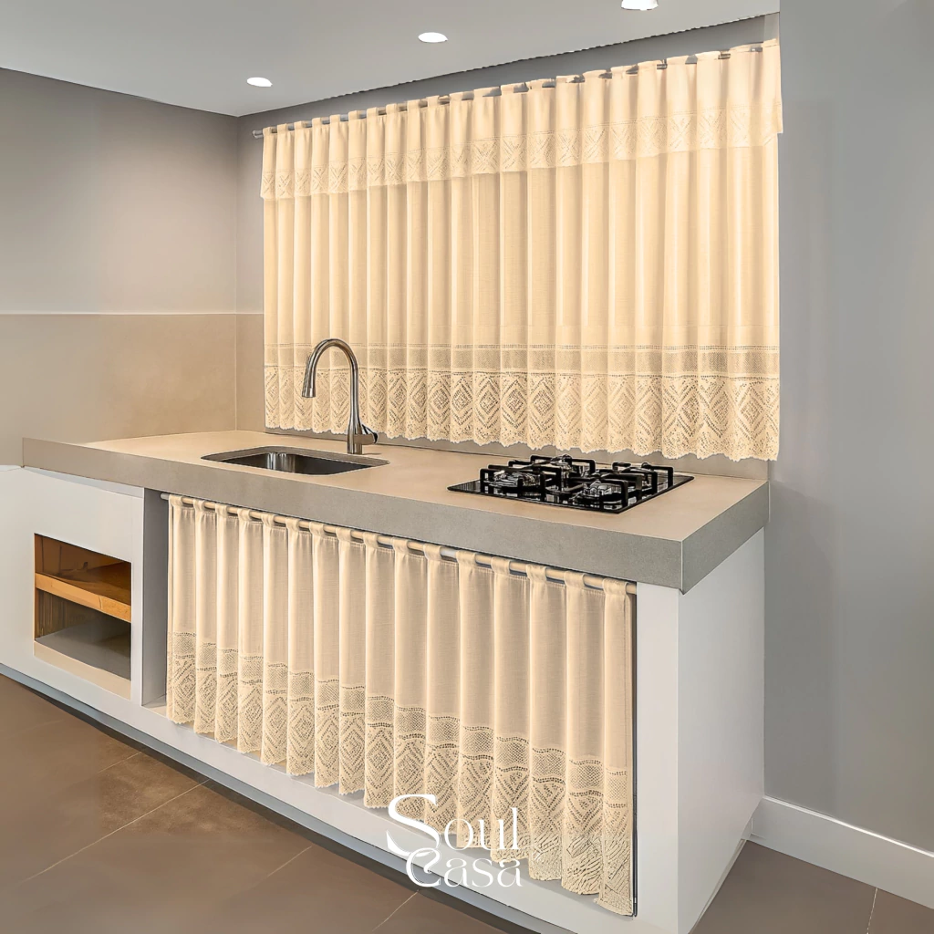 Cortina para Cozinha Palha Renda Tulipa com Bandô de 40cm 🌷✨